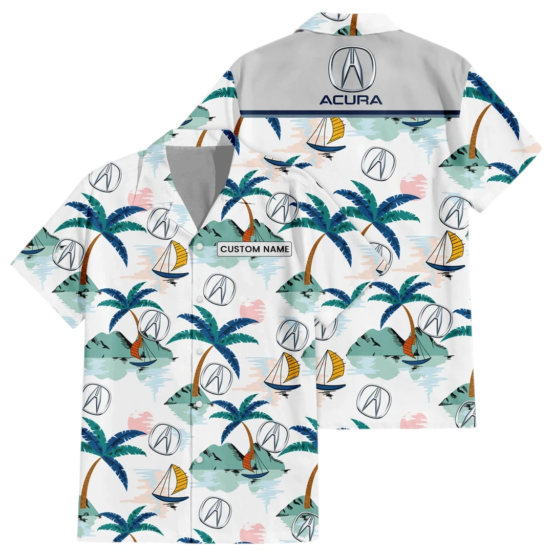 Acura Exclusive Logo Button Up Hawaiian Shirt Tropical Landscape Pattern All-over Print, Custom Name HIDI170225Y7HWLS2ACU