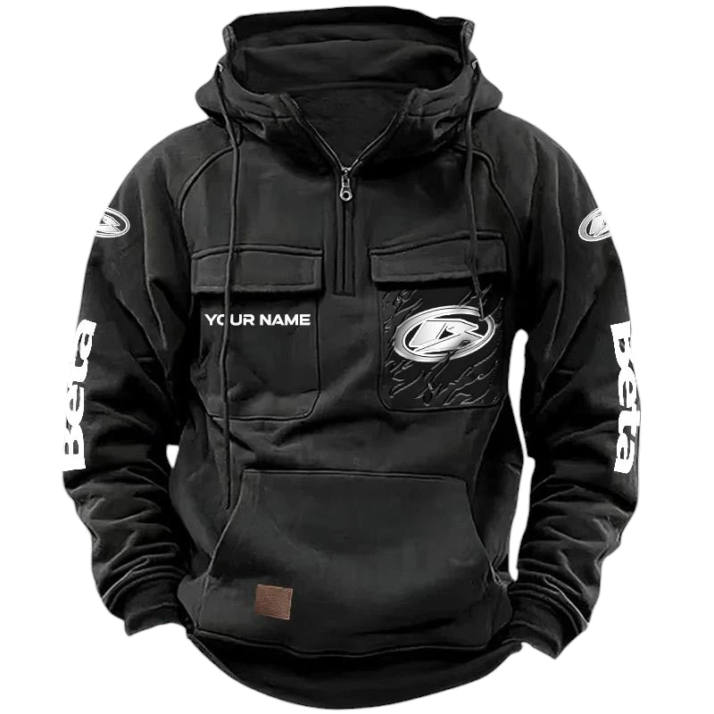 Beta Quarter Zip Hoodie, Sports Hoodie Multi-Pockets, Custom Name HG030525Y41HJRCT1BEM