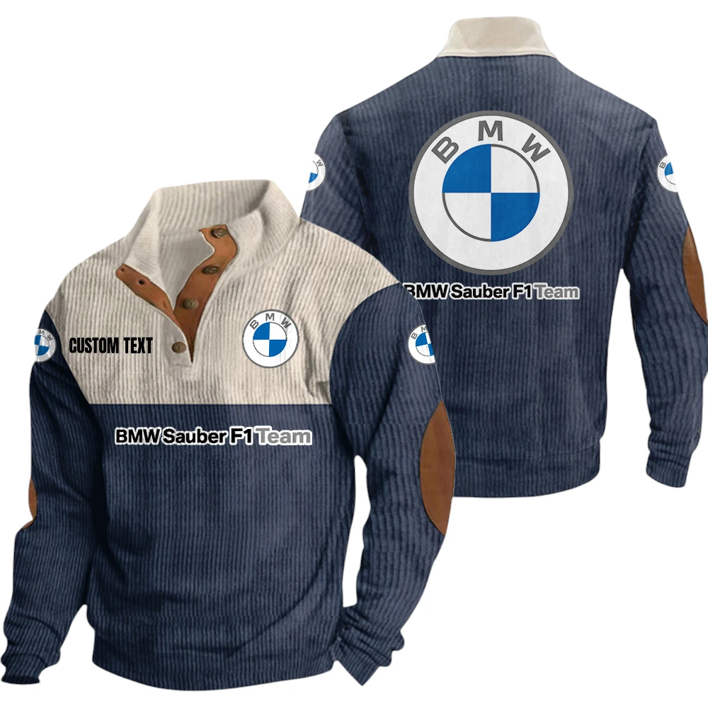 BMW F1 Exclusive Logo Knitted Ribbed Corduroy Sweatshirt Mid Stretch Stand Collar Pullover Sweater, Custom Text HG130325Y32RCSCT1BMW