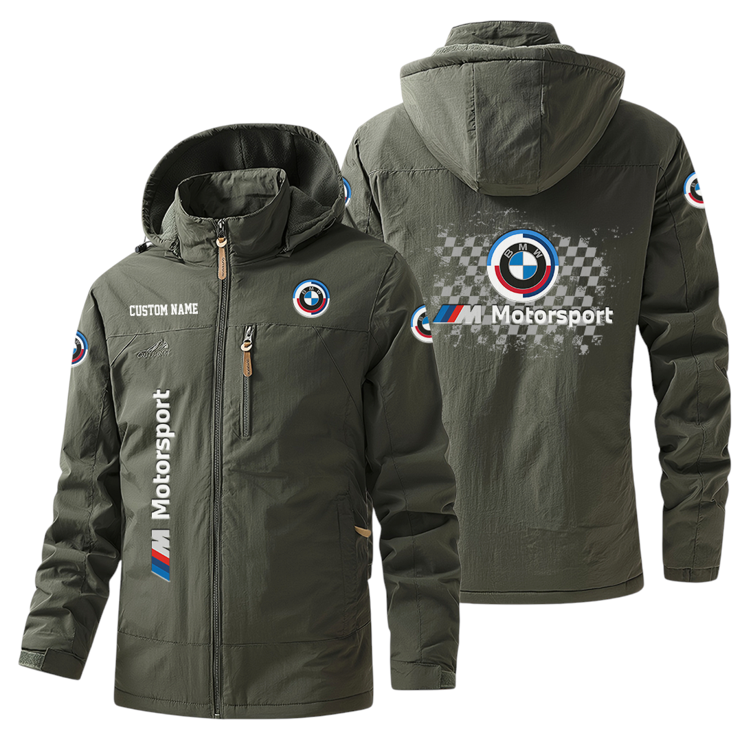 BMW M Motorsport Racing Windbreaker Jacket Hooded Warm Lining Waterproof Custom Name