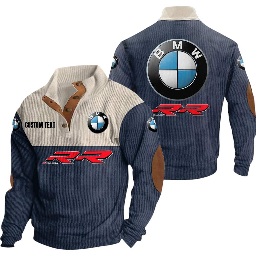 BMW S1000rr Exclusive Logo Knitted Ribbed Corduroy Sweatshirt Mid Stretch Stand Collar Pullover Sweater, Custom Text HG130325Y32RCSCT8BMW