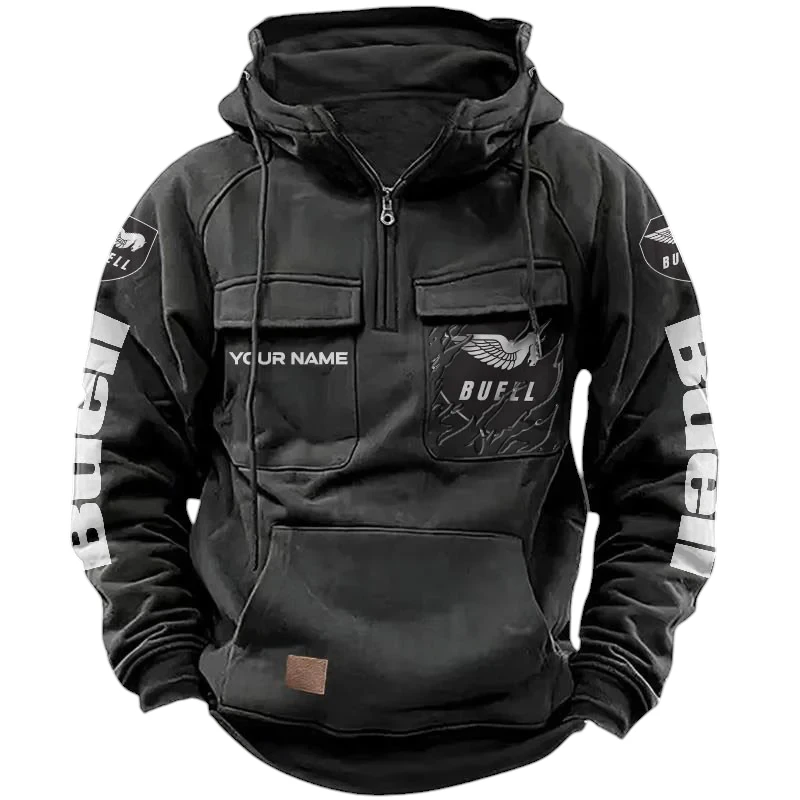 Buell Motorcycles Quarter Zip Hoodie, Sports Hoodie Multi-Pockets, Custom Name HG060525Y41HJRCT1BUM