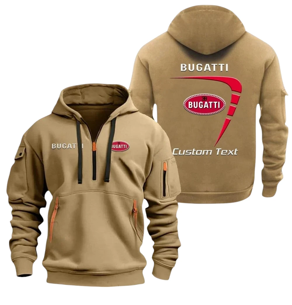 Bugatti Half Zip Hoodie, Sports Hooded Multi-Pockets, Custom Name TN260325Y25QZ2HRCT1BUG