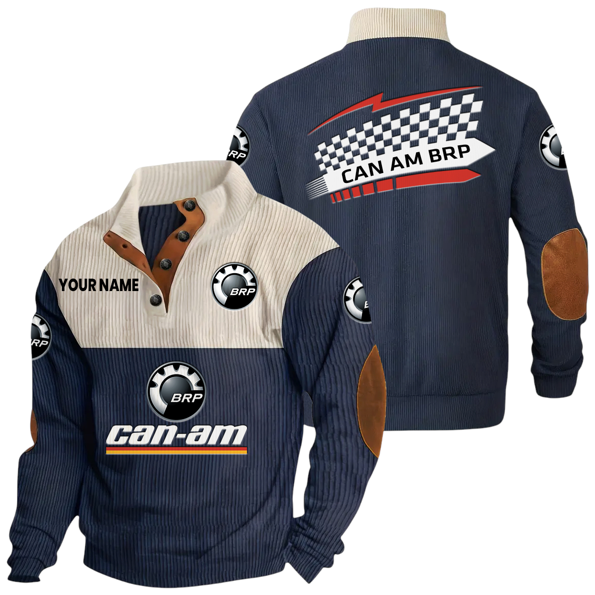 Can Am BRP Exclusive Logo Knitted Ribbed Corduroy Sweatshirt Stand Collar Custom Name