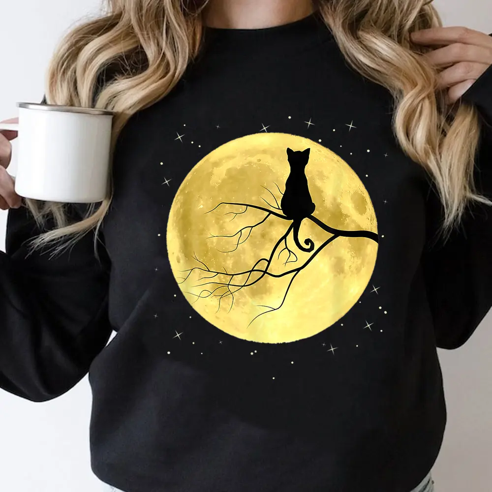 Cat On Moon Mystical Halloween Sweatshirt