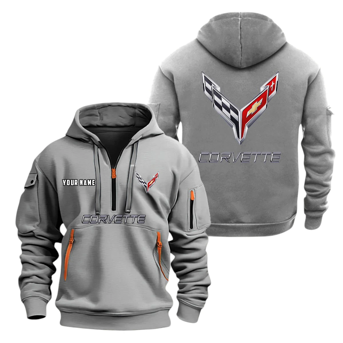 Chevrolet Corvette Half Zip Hoodie, Sports Hooded Multi-Pockets, Custom Name TN0030325Y25QZ2HCT2COR