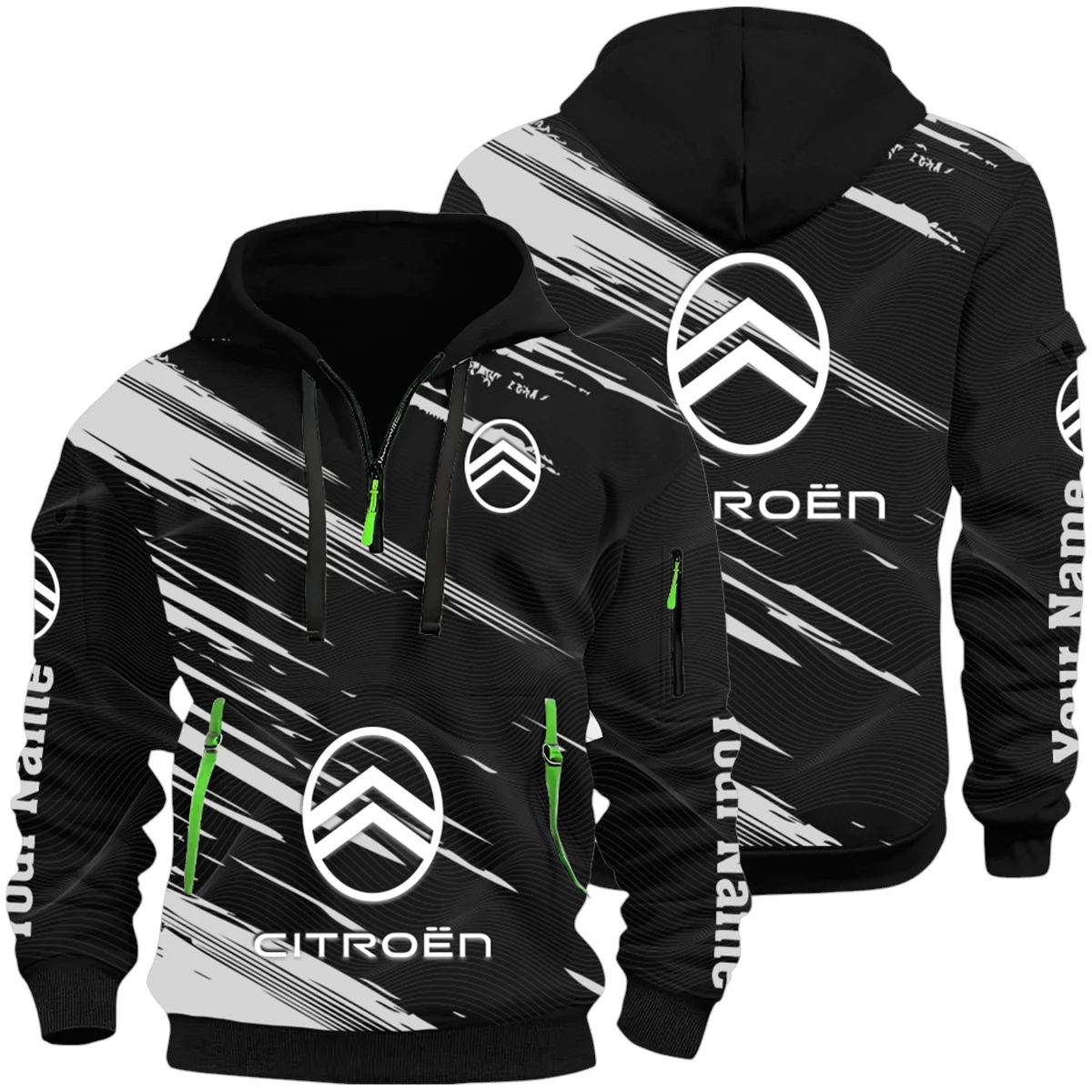Citroen Half Zip Hoodie All Over Prints, Multi-Pockets Custom Name HIHI190625Y26QZ3HCIT