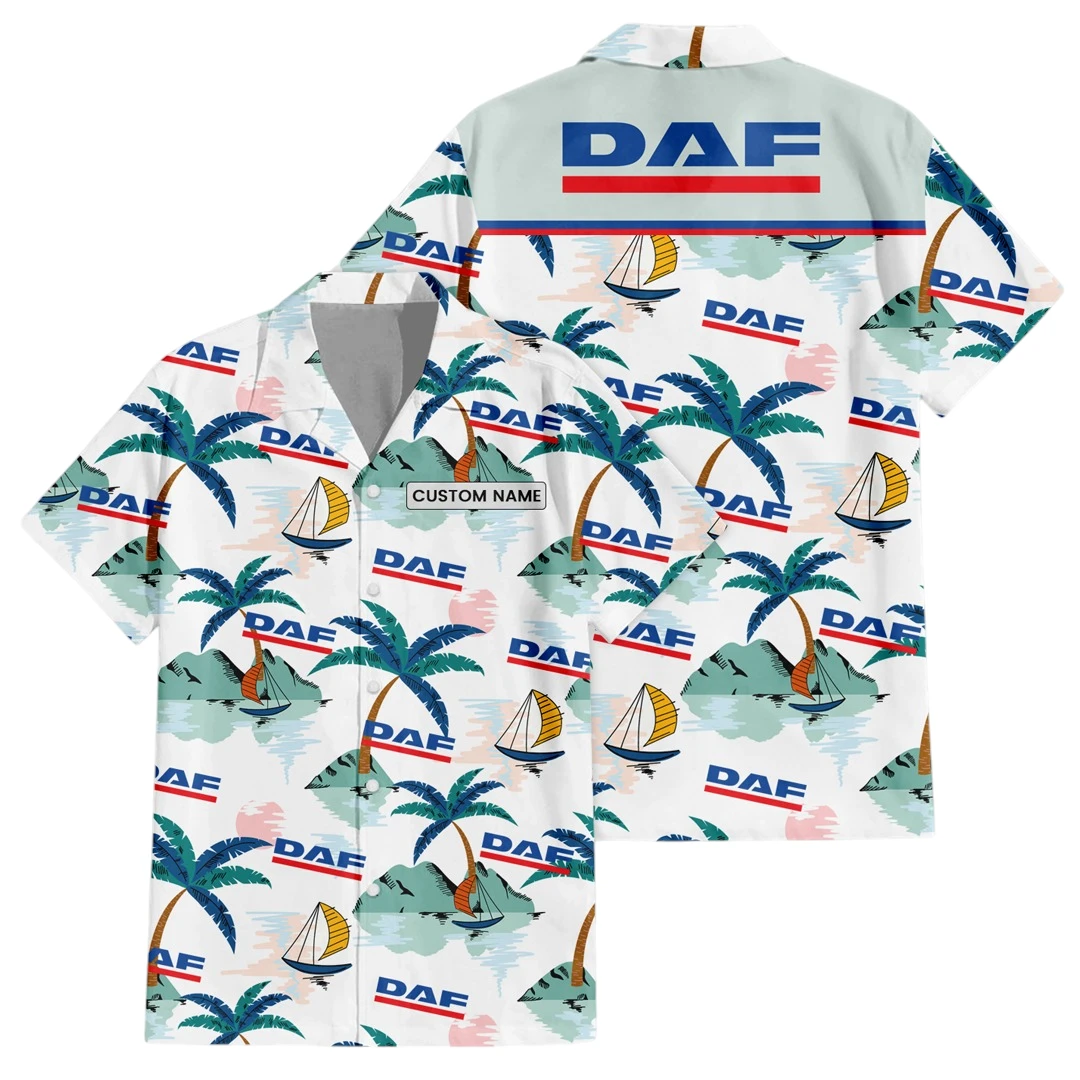 DAF Exclusive Logo Button Up Hawaiian Shirt Tropical Landscape Pattern All-over Print, Custom Name HIDI190225Y7HWLS2DAF