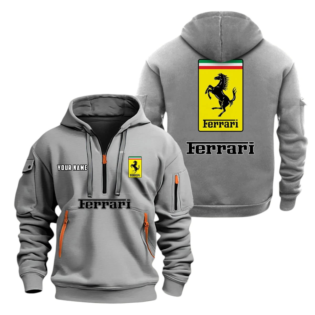 Ferrari Half Zip Hoodie, Sports Hooded Multi-Pockets, Custom Name TN060325Y25QZ2HCT1FER