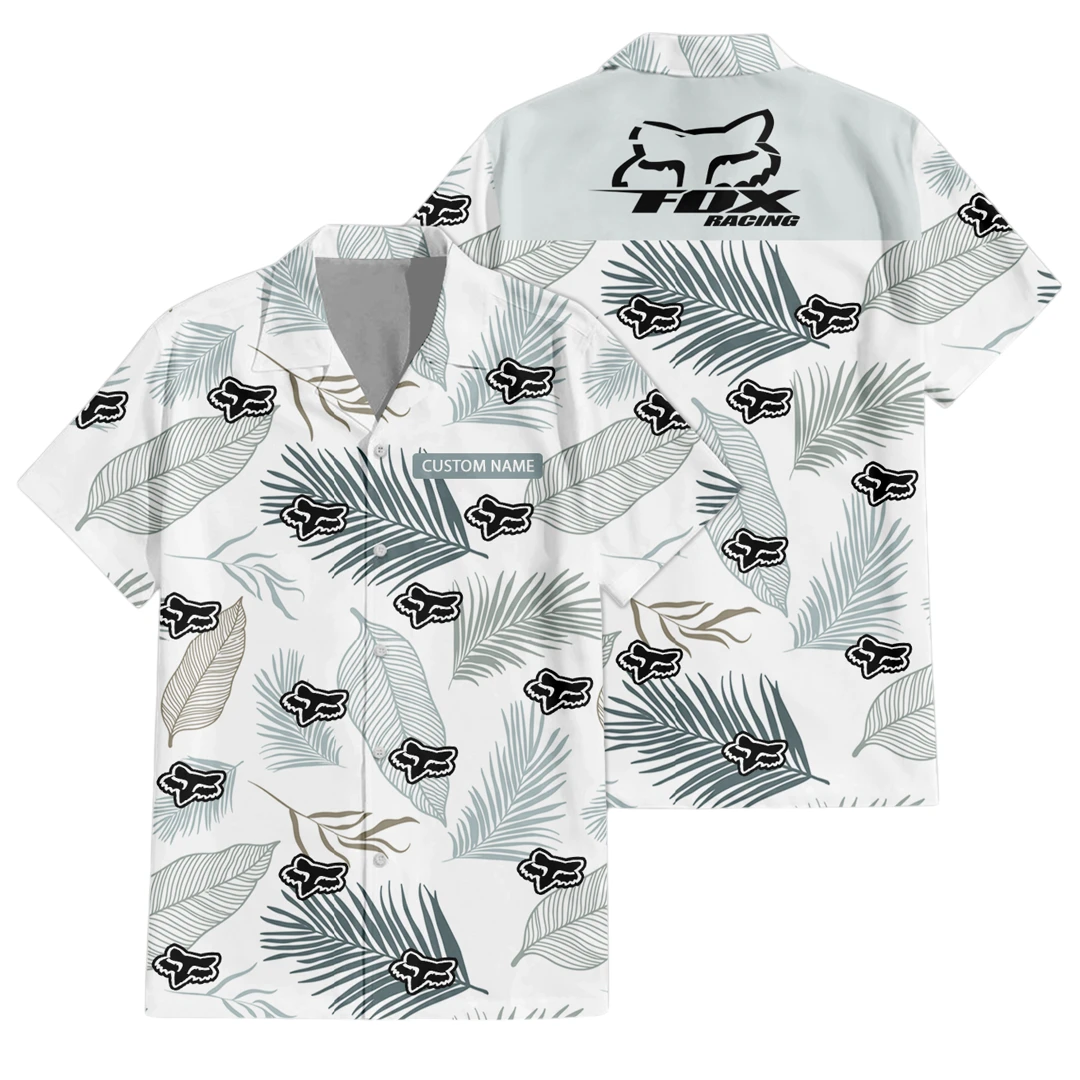 Fox Racing Exclusive Logo Button Up Hawaiian Shirt Tropical Leaves Seamless Pattern All-over Print, Custom Name HIHI170125Y7HWLS1FOX