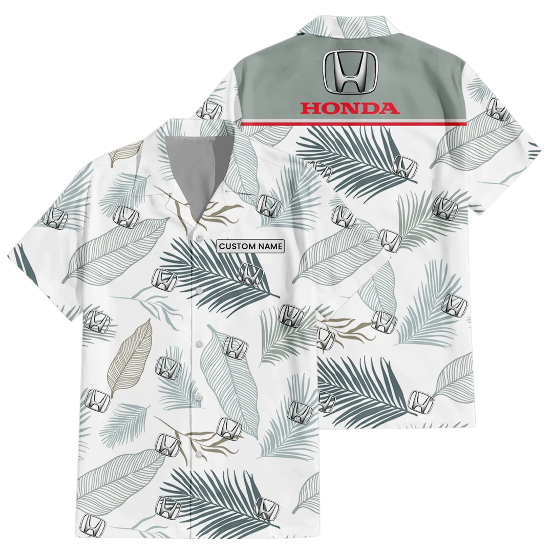 Honda Exclusive Logo Button Up Hawaiian Shirt Tropical Leaves Seamless Pattern All-over Print, Custom Name HIHI170225Y7HWLS1HON