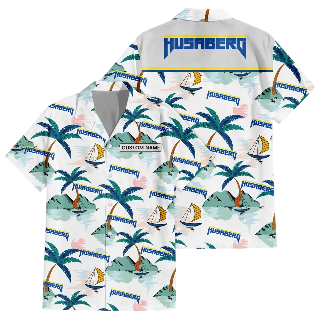 Husaberg Exclusive Logo Button Up Hawaiian Shirt Tropical Landscape Pattern All-over Print, Custom Name HIDI200225Y7HWLS2HUS