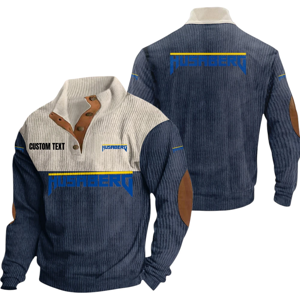 Husaberg Exclusive Logo Knitted Ribbed Corduroy Sweatshirt Mid Stretch Stand Collar Pullover Sweater, Custom Text HG150325Y32RCSCT1HUS