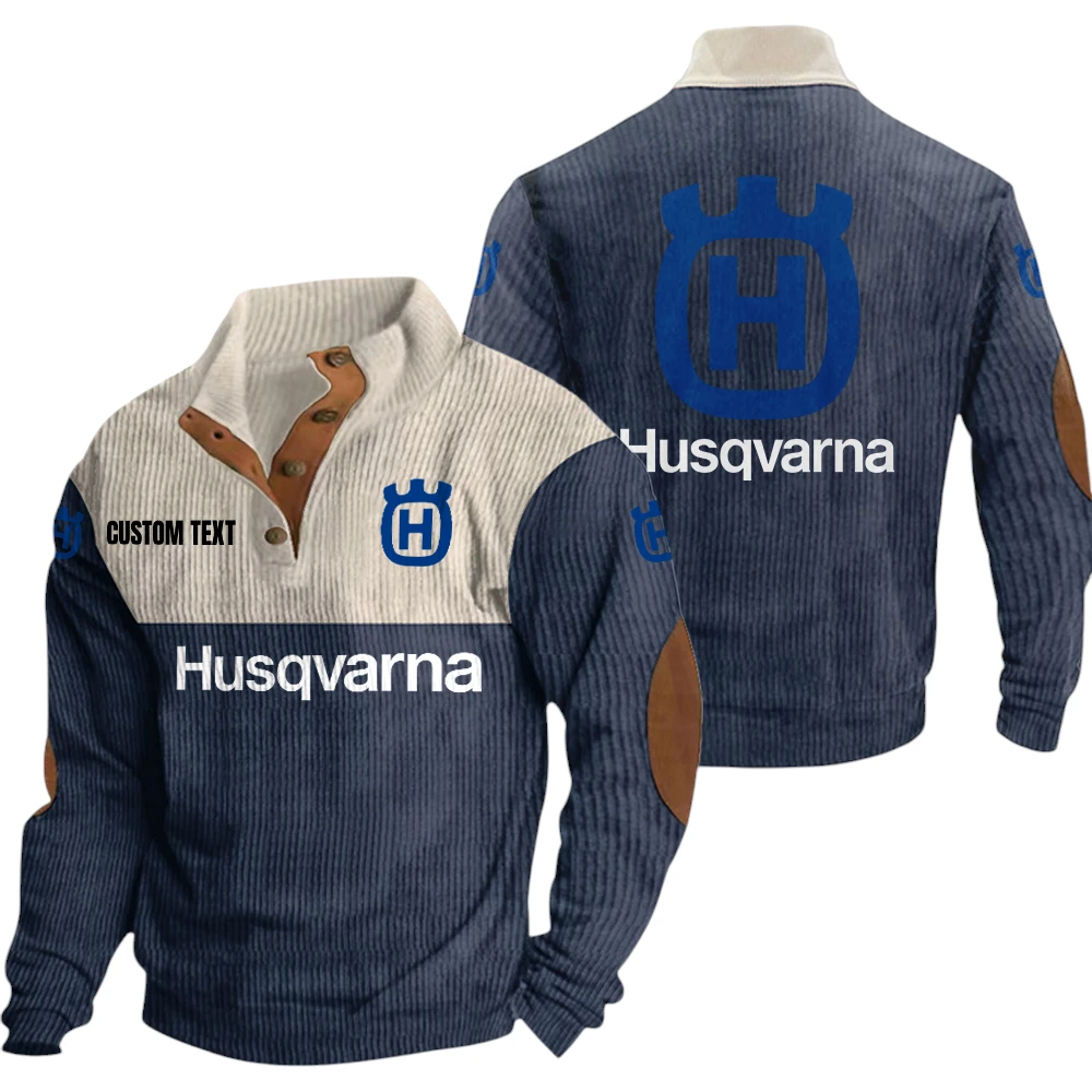 Husqvarna Exclusive Logo Knitted Ribbed Corduroy Sweatshirt Mid Stretch Stand Collar Pullover Sweater, Custom Text HG150325Y32RCSCT2HUS