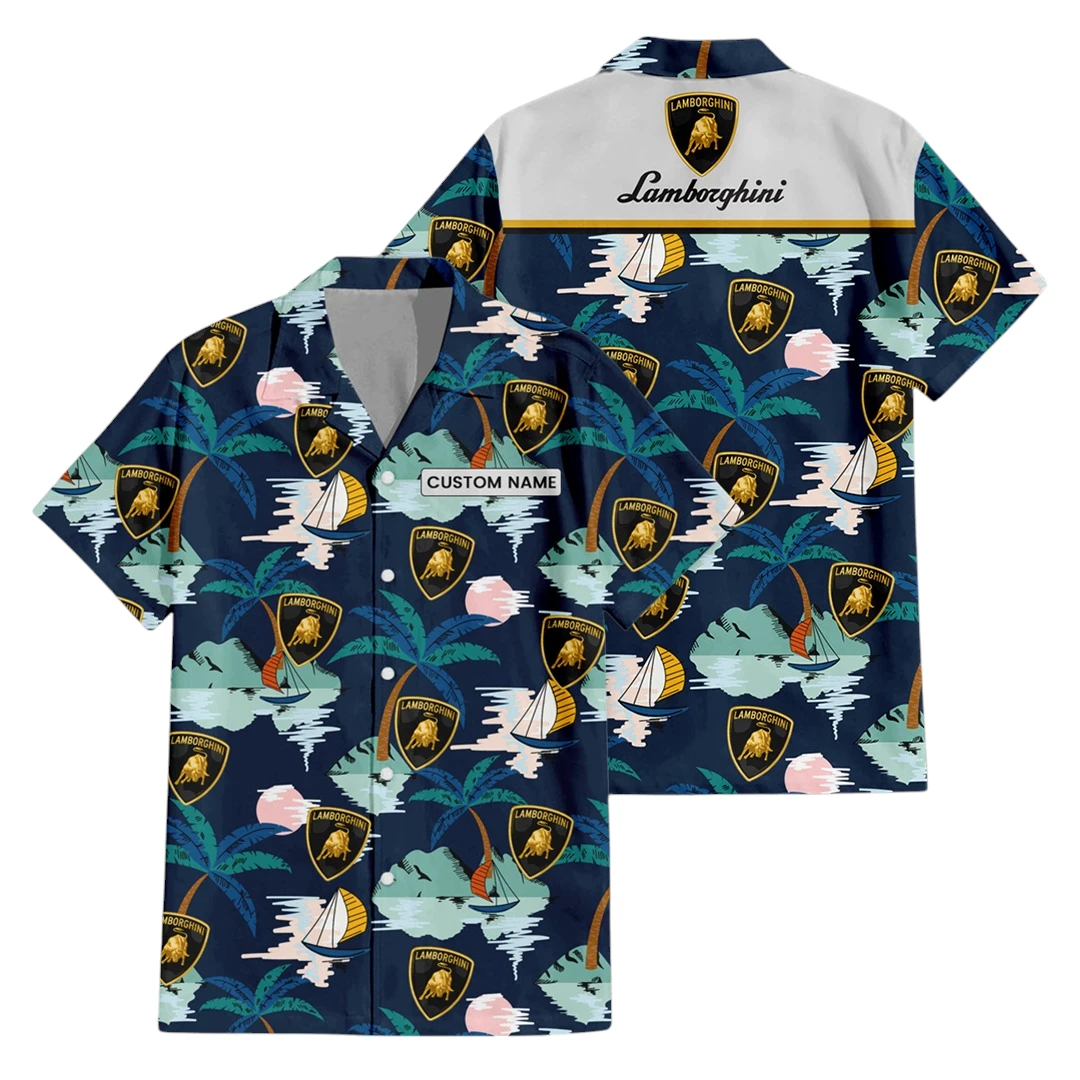 Lamborghini Exclusive Logo Aloha Button Up Hawaiian Shirt Tropical Landscape Pattern All-over Print, Custom Name HIDI200225Y7HWLS2LAM
