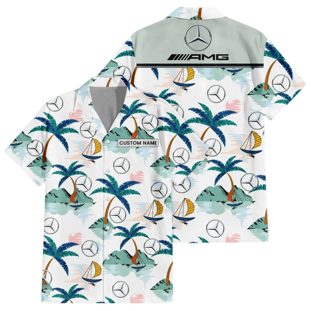 Mercedes AMG Exclusive Logo Button Up Hawaiian Shirt Tropical Landscape Pattern All-over Print, Custom Name HIDI190225Y7HWLS2AMG