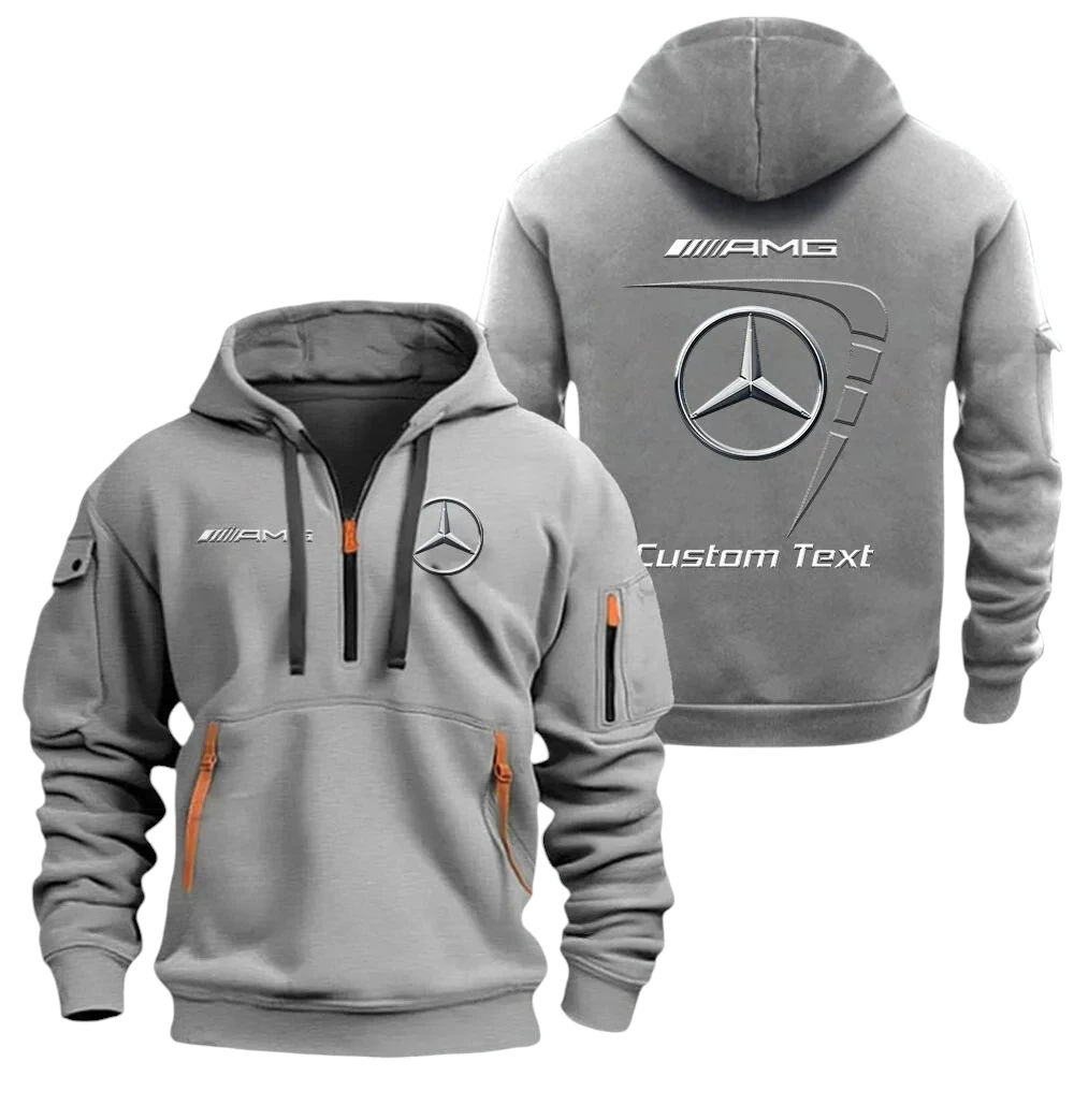 Mercedes AMG Half Zip Hoodie, Sports Hooded Multi-Pockets, Custom Name TN250325Y25QZ2HCT1AMG