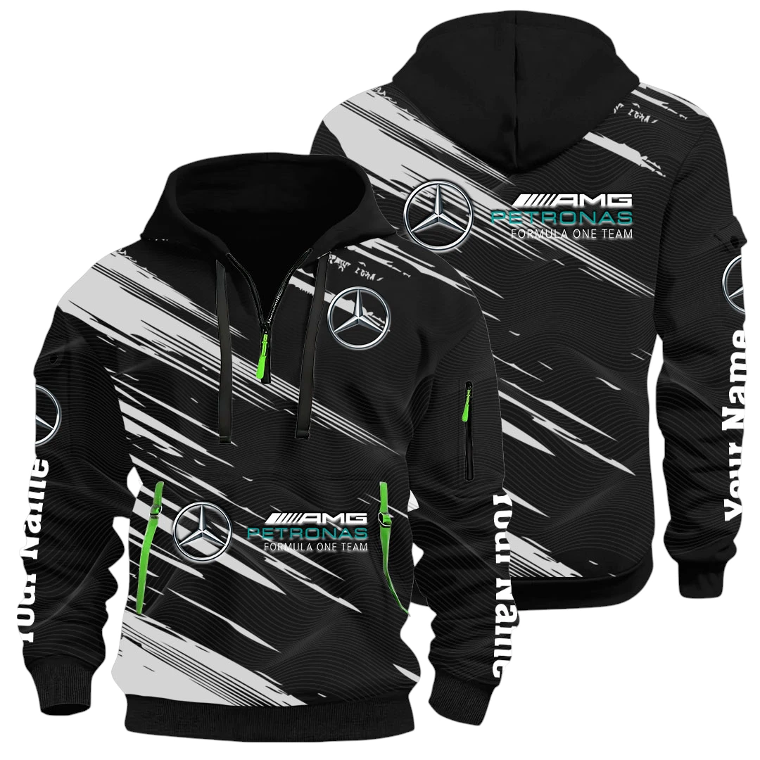 Mercedes-AMG Petronas Racing Half Zip Hoodie All Over Prints, Multi-Pockets Custom Name HIHI240625Y26QZ3HMAP