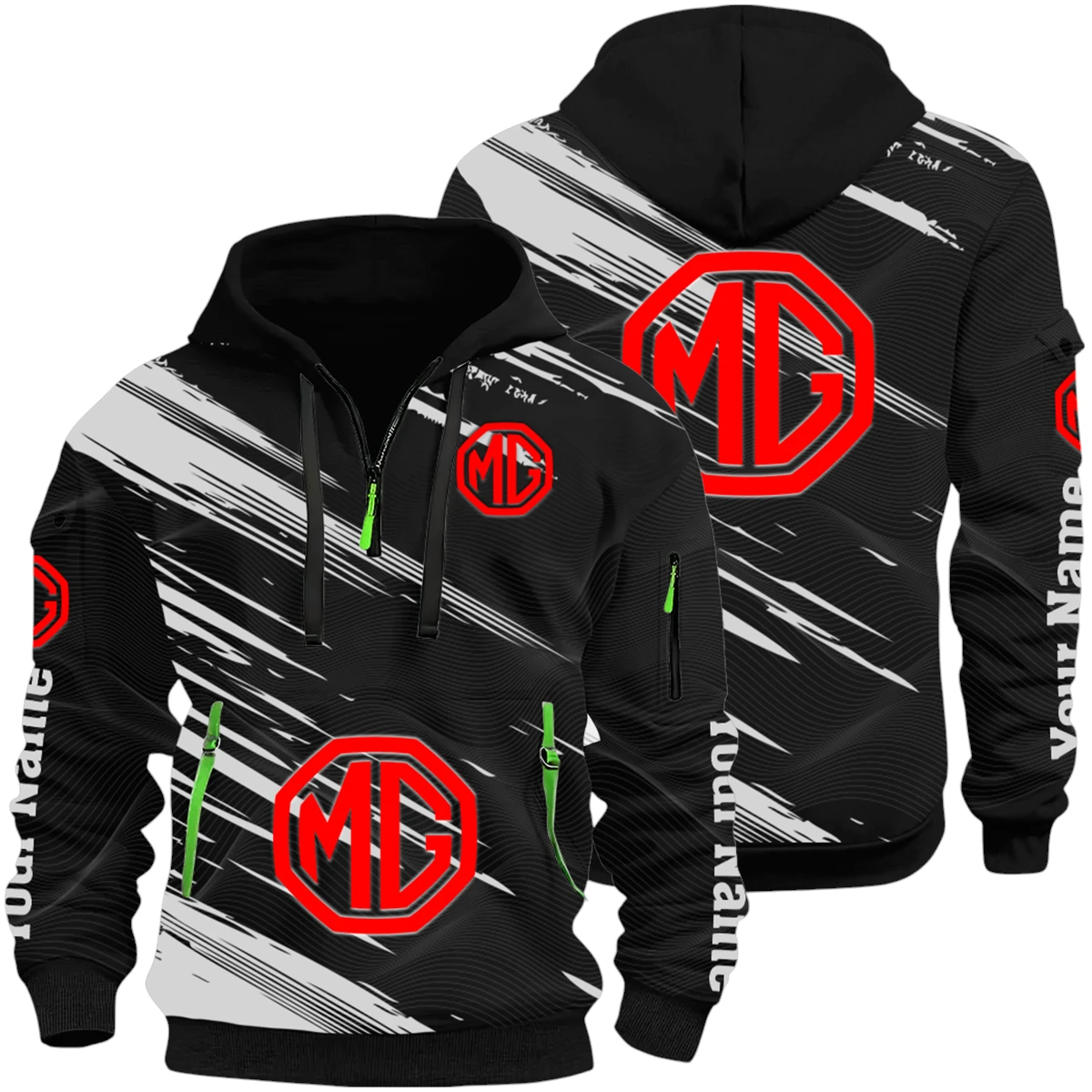 MG Cars Half Zip Hoodie All Over Prints, Multi-Pockets Custom Name HIHI180625Y26QZ3HMGC