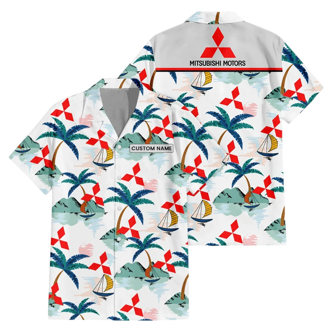 Mitsubishi Exclusive Logo Button Up Hawaiian Shirt Tropical Landscape Pattern All-over Print, Custom Name HIDI200225Y7HWLS2MIT