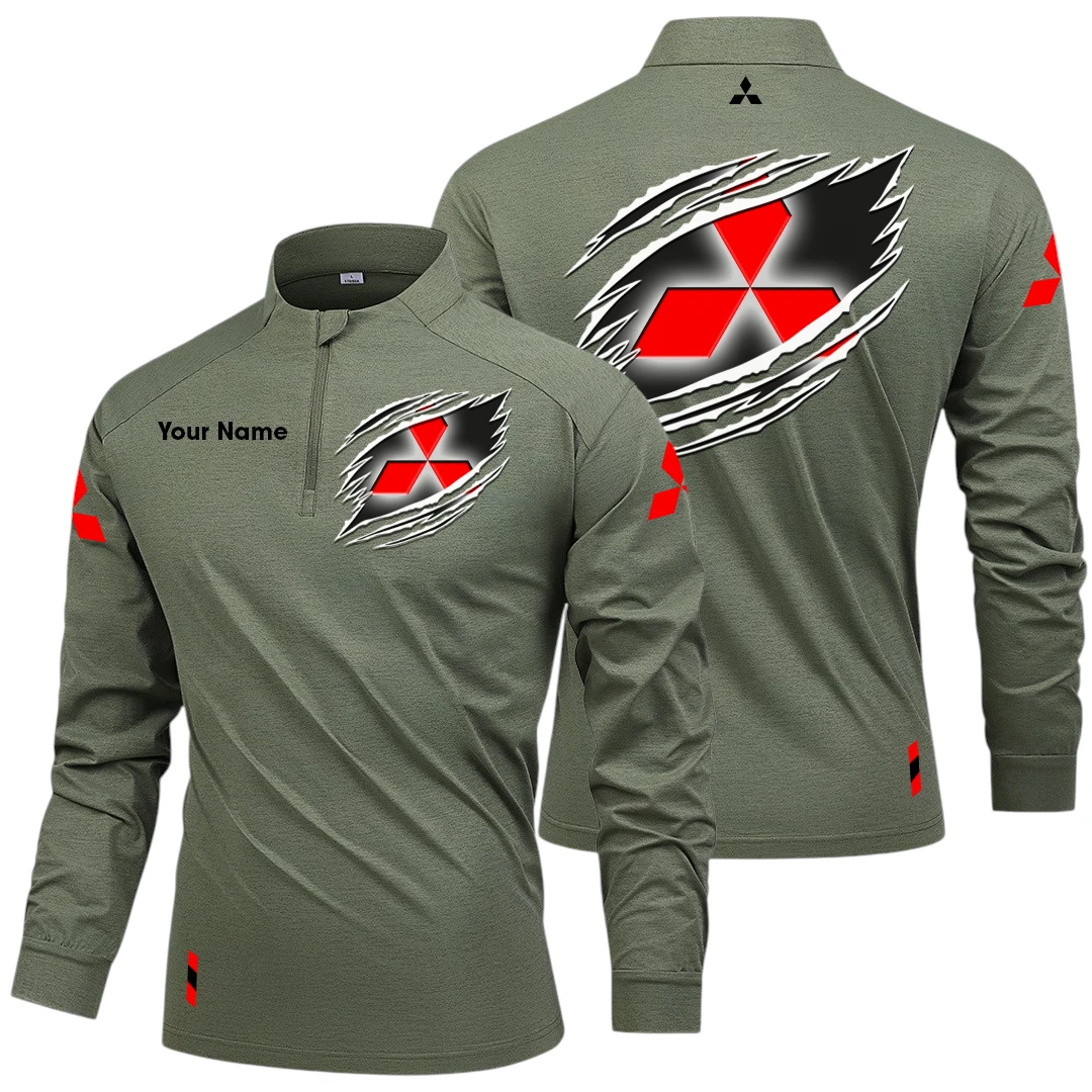 Mitsubishi Long Sleeve Shirt, Stand Collar Quarter Zip-up Custom Name HIDI090525Y49LMT05MIT