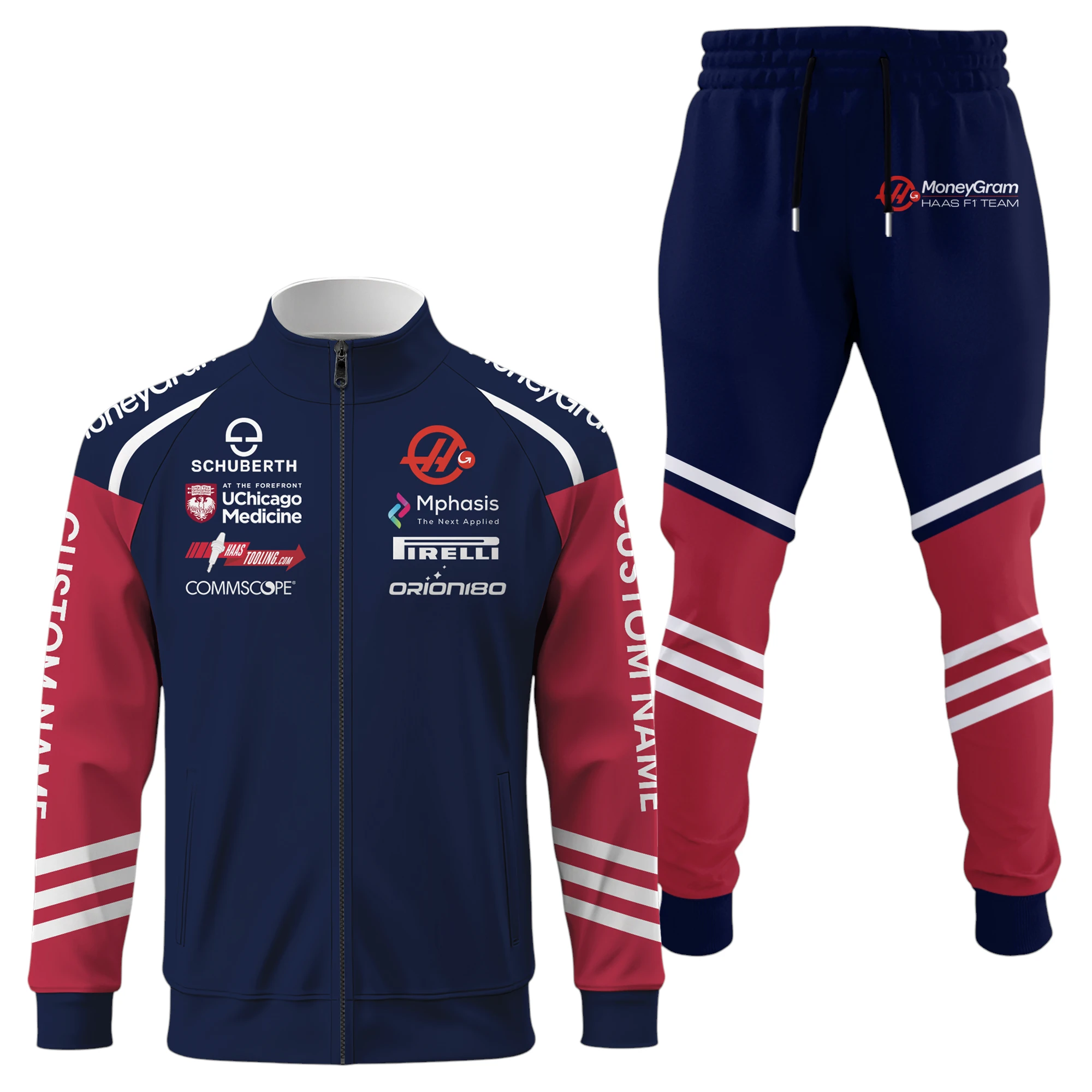MoneyGram Haas F1 Team Racing Long Sleeve Shirt Full Zip x Long Pants Set All Over Print, Sports Style Custom Name HIDI020425Y53S16JKMGH