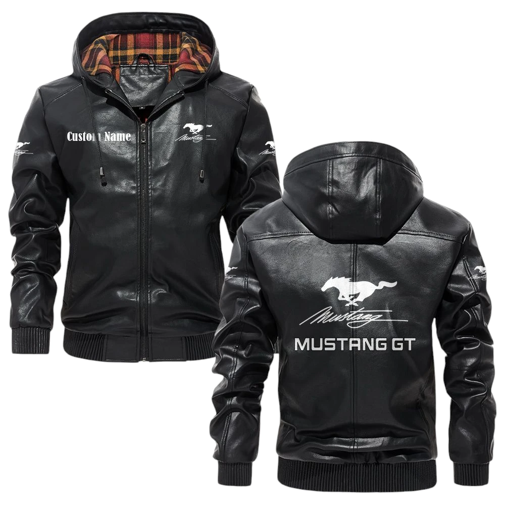 Mustang GT Exclusive Logo Hooded Jacket PU Leather x Durable Windproof Warm Soft Checkered Lining, Custom Name HG030425Y47JHLCT1MUS
