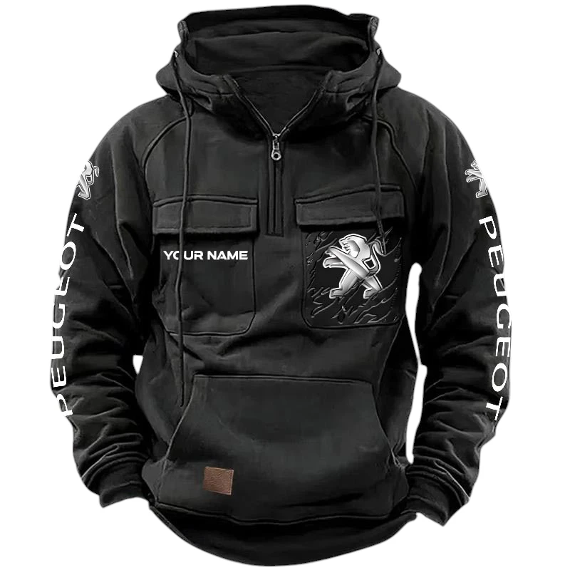 Peugeot Quarter Zip Hoodie, Sports Hoodie Multi-Pockets, Custom Name HG170525Y41HJRCT1PEU