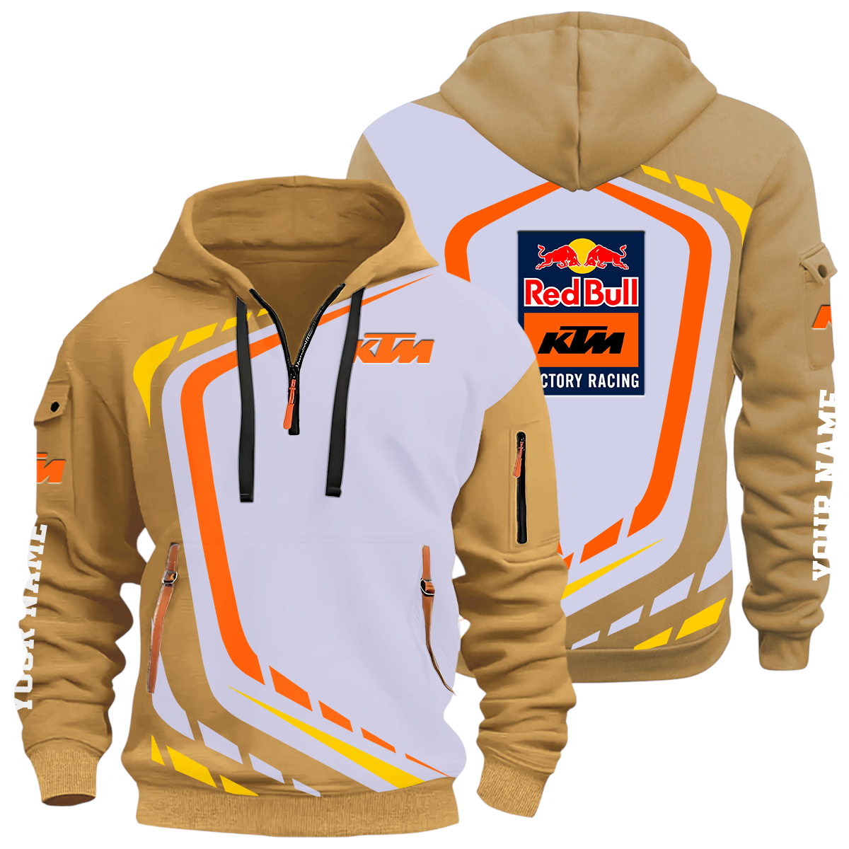 Red Bull KTM Factory Racing Half Zip Hoodie All Over Prints Multi-Pockets Custom Name