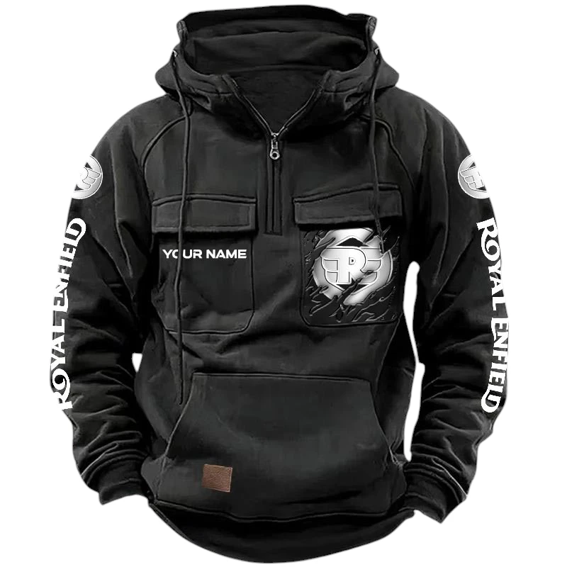 Royal Enfield Quarter Zip Hoodie, Sports Hoodie Multi-Pockets, Custom Name HG170525Y41HJRCT1ROY