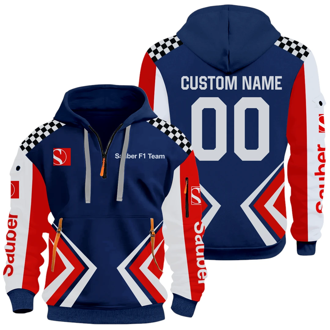 Sauber Motorsport Half Zip Hoodie All Over Prints, Multi-Pockets Custom Name & Number HIDI070325Y26QZ3HSAM