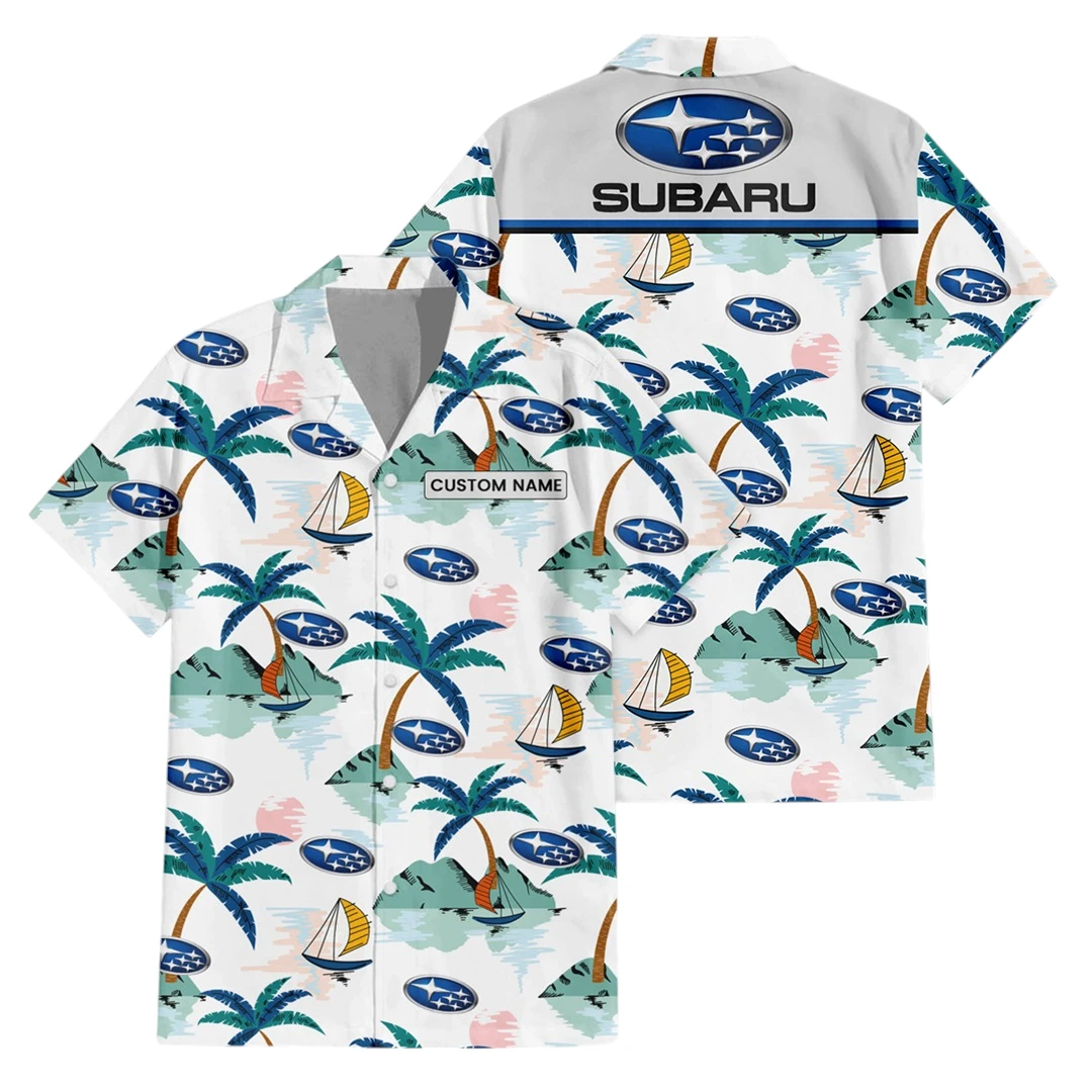 Subaru Exclusive Logo Button Up Hawaiian Shirt Tropical Landscape Pattern All-over Print, Custom Name HIDI210225Y7HWLS2SUB