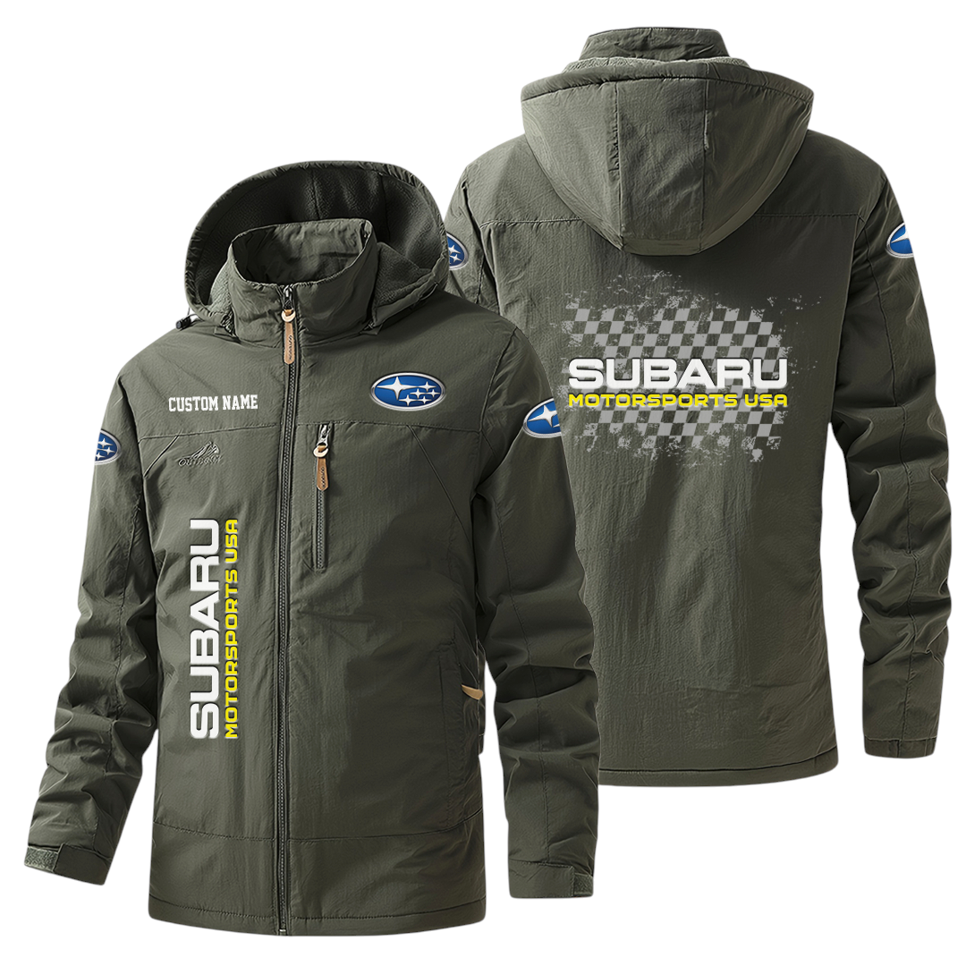Subaru Motorsports USA Racing Windbreaker Jacket Hooded Warm Lining Waterproof Custom Name