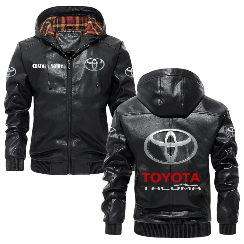 Toyota Tacoma Exclusive Logo Hooded Jacket PU Leather x Durable Windproof Warm Soft Checkered Lining, Custom Name HG040425Y47JHLCT10TOY