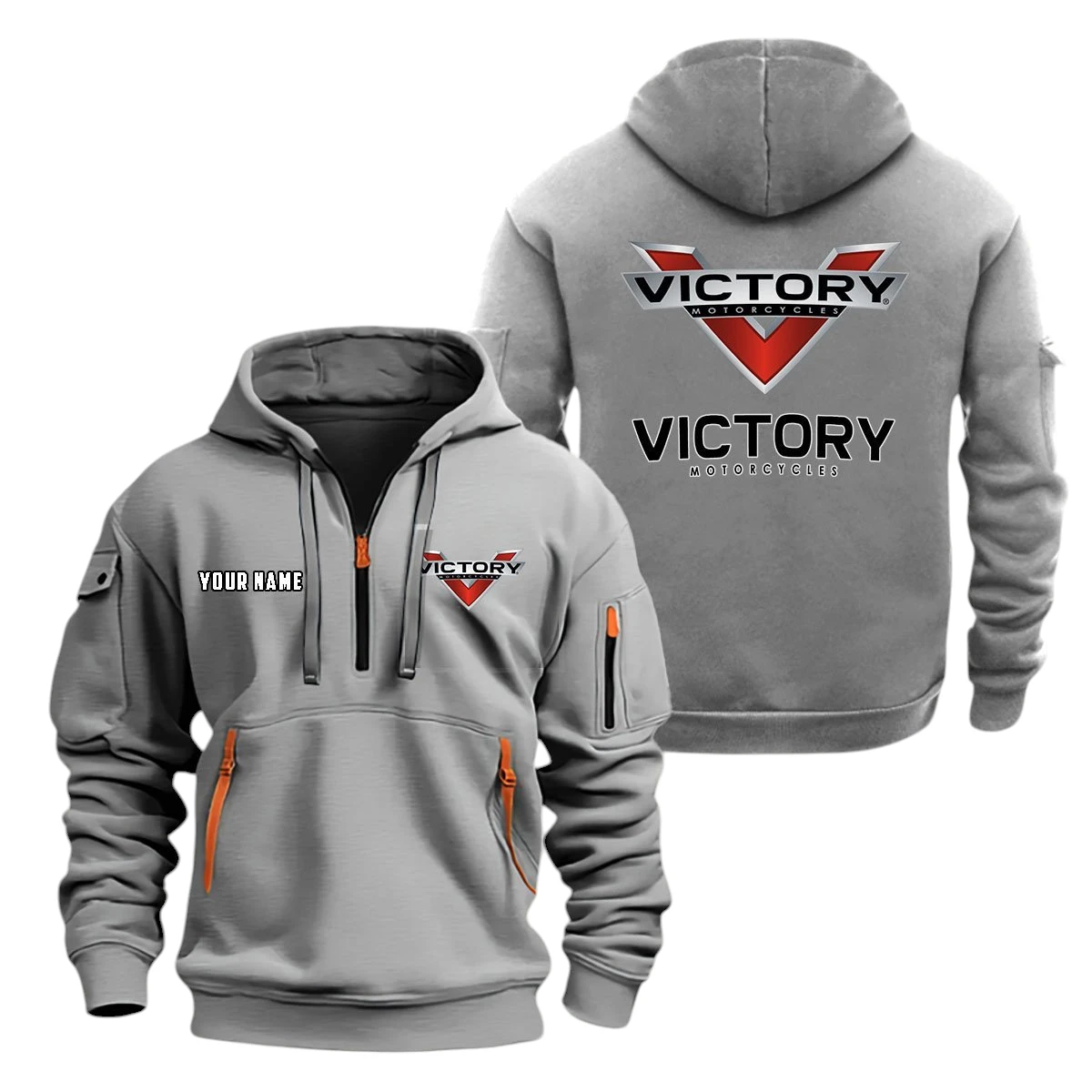 Victory Motorcycles Half Zip Hoodie, Sports Hooded Multi-Pockets, Custom Name TN100325Y25QZ2HCT1VIM