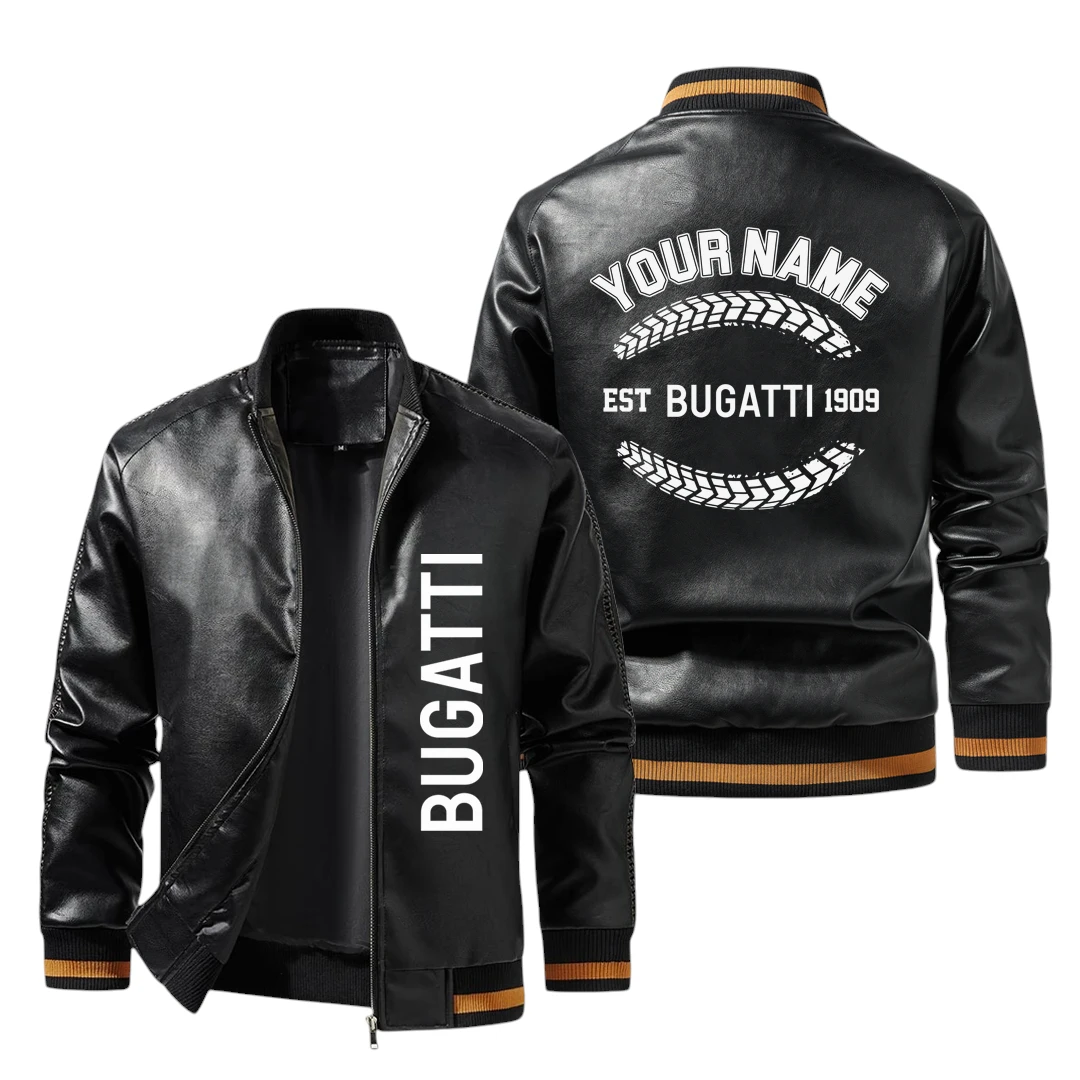Vintage Bugatti Exclusive Logo Jacket Est 1909, Classic Ribbed Collar and Striped Cuffs, Custom Name HIDI220225Y12LJ93BUG