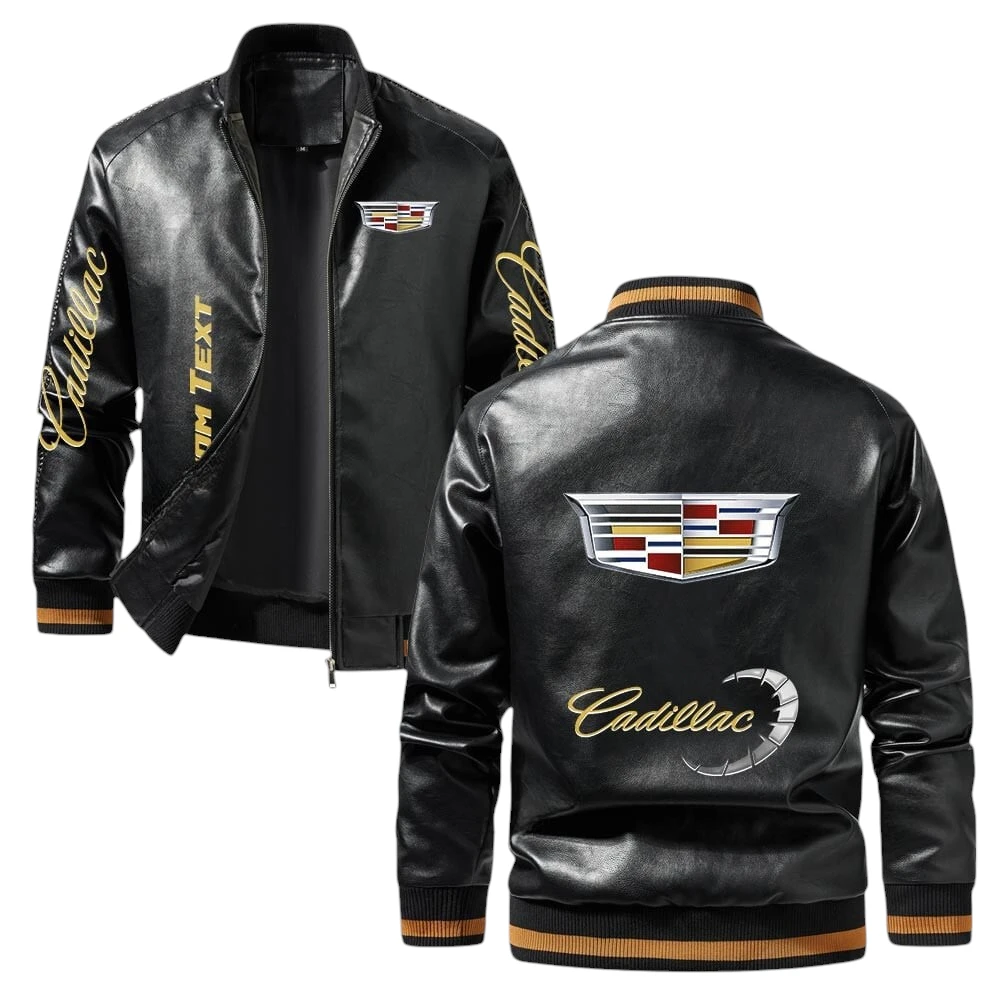 Vintage Cadillac Exclusive Logo Jacket, Classic Ribbed Collar and Striped Cuffs, Custom Name TN21032025Y12LJ93CT1CAD