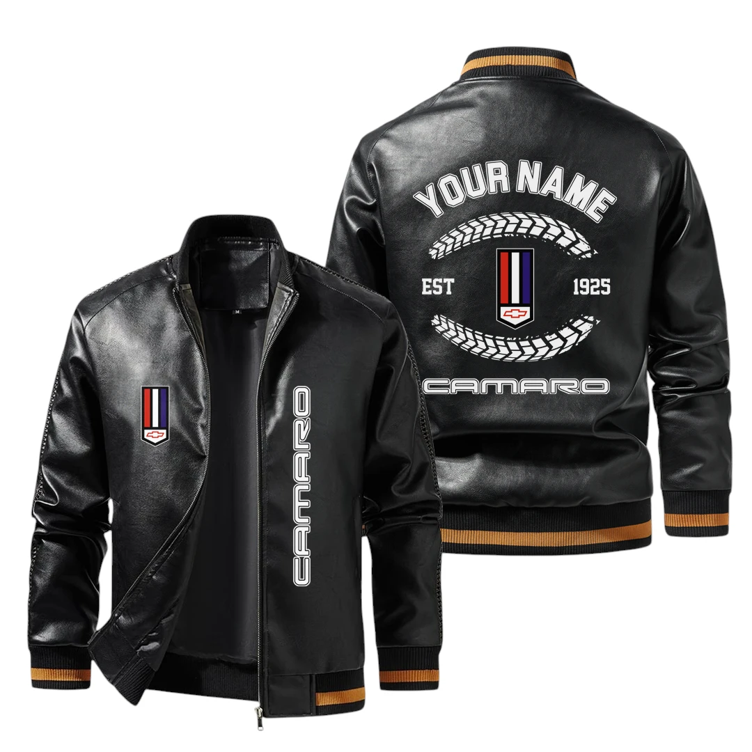 Vintage Chevrolet Camaro Exclusive Logo Jacket Est 1925, Classic Ribbed Collar and Striped Cuffs, Custom Name HIDI240225Y12LJ93CHC