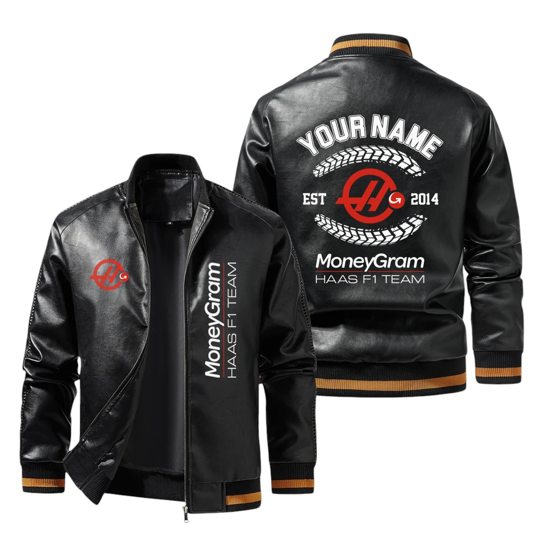 Vintage MoneyGram Haas F1 Team Exclusive Logo Jacket Est 2014, Classic Ribbed Collar and Striped Cuffs, Custom Name HIDI270225Y12LJ93MGH