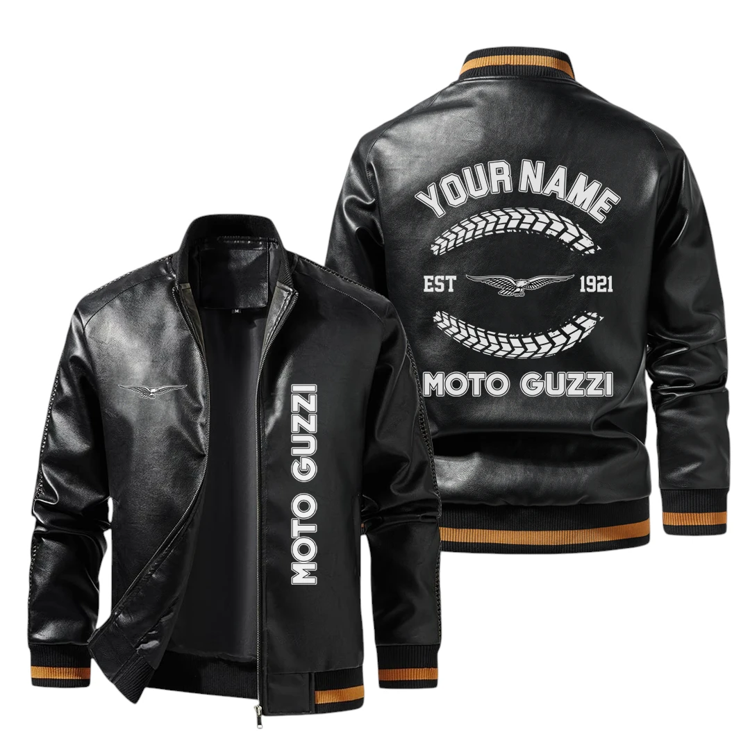 Vintage Moto Guzzi Exclusive Logo Jacket Est 1921, Classic Ribbed Collar and Striped Cuffs, Custom Name HIDI270225Y12LJ93MOG