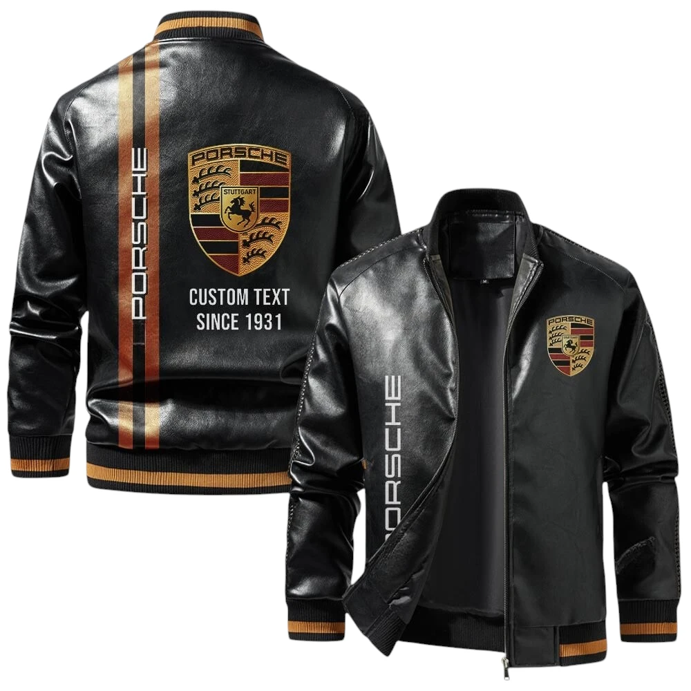 Vintage Porsche Exclusive Logo Jacket, Classic Ribbed Collar and Striped Cuffs, Custom Name TN01042025Y12LJ93CT1POR