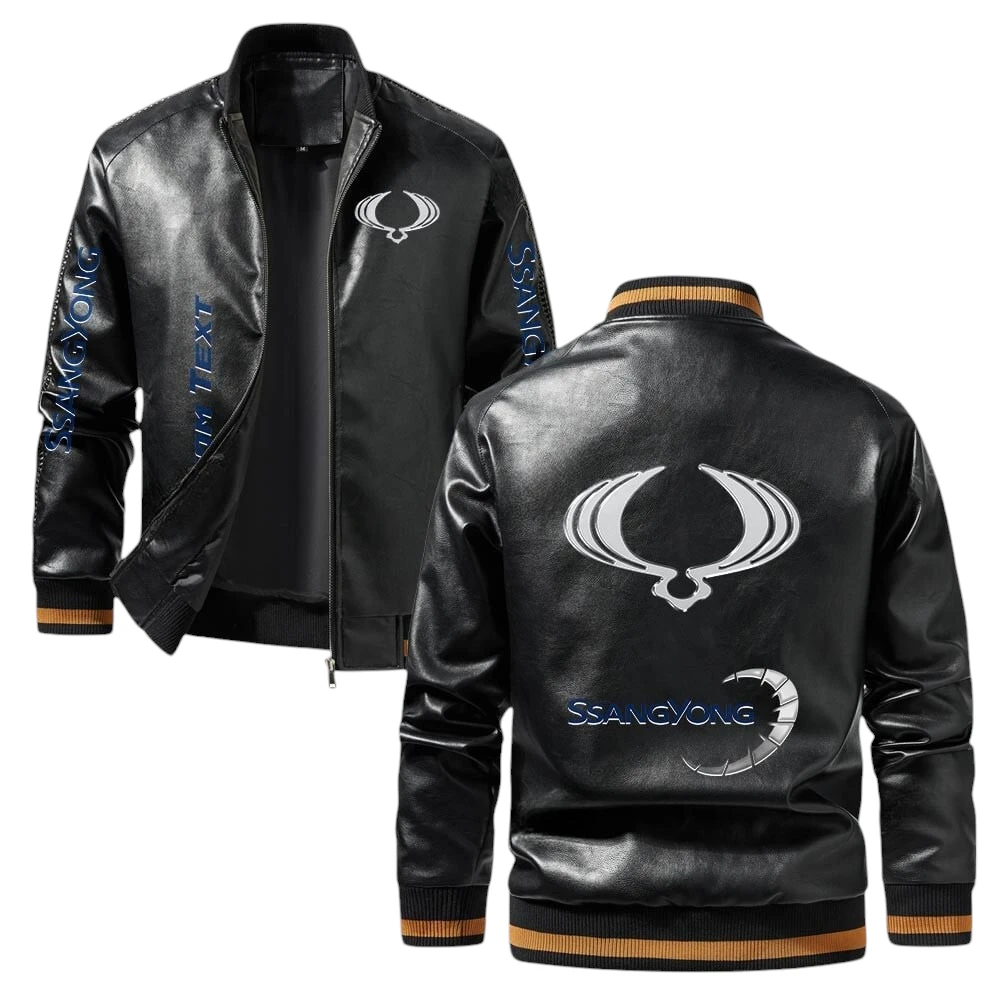 Vintage SsangYong Motor Exclusive Logo Jacket, Classic Ribbed Collar and Striped Cuffs, Custom Name TN01042025Y12LJ93CT1SSA
