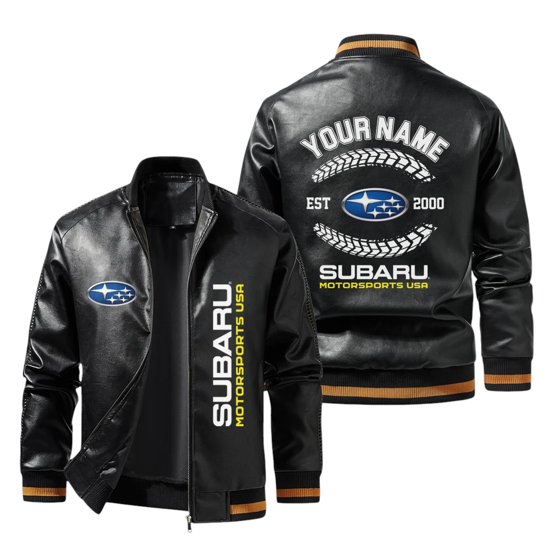 Vintage Subaru Motorsports USA Exclusive Logo Jacket Est 2000, Classic Ribbed Collar and Striped Cuffs, Custom Name HIDI280225Y12LJ93SUM