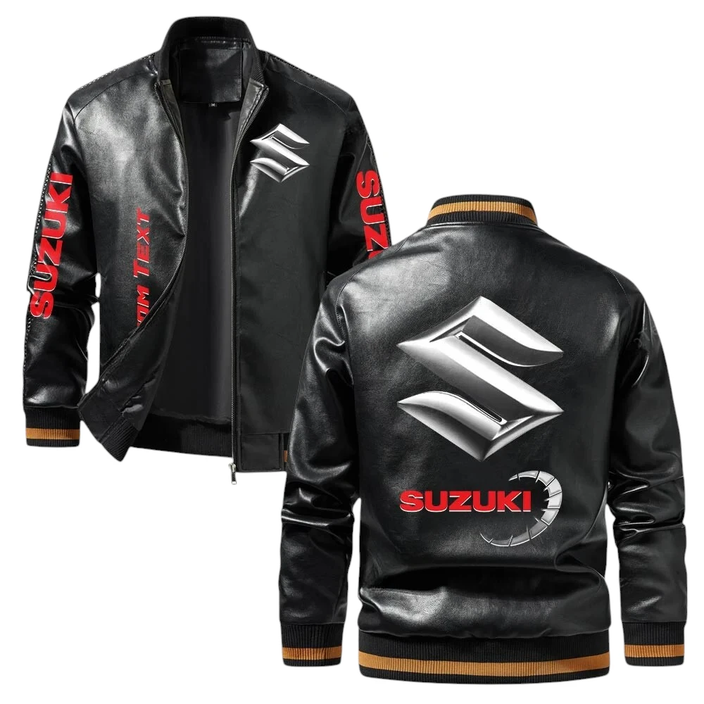 Vintage Suzuki Exclusive Logo Jacket, Classic Ribbed Collar and Striped Cuffs, Custom Name TN01042025Y12LJ93CT1SUZ
