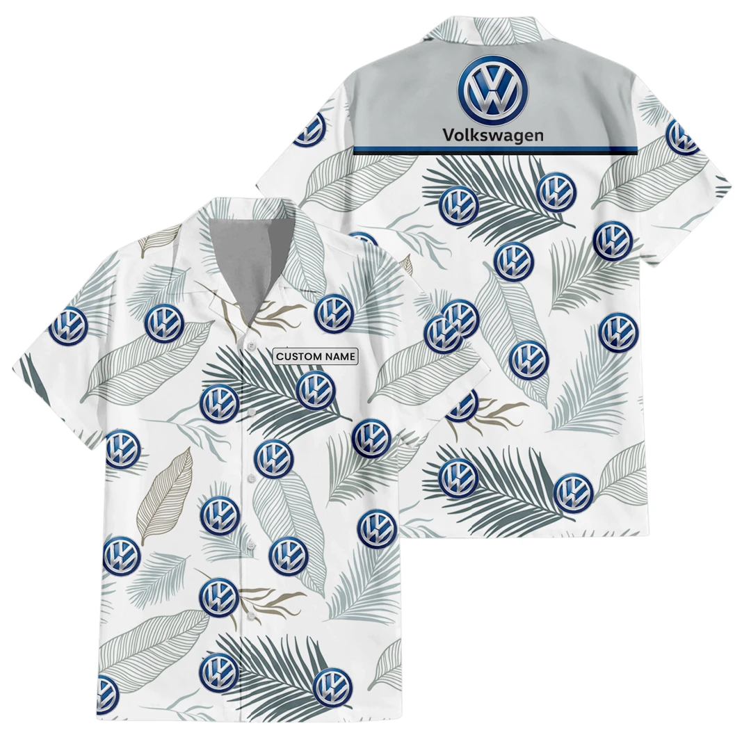 Volkswagen Exclusive Logo Button Up Hawaiian Shirt Tropical Leaves Seamless Pattern All-over Print, Custom Name HIHI190225Y7HWLS1VOL