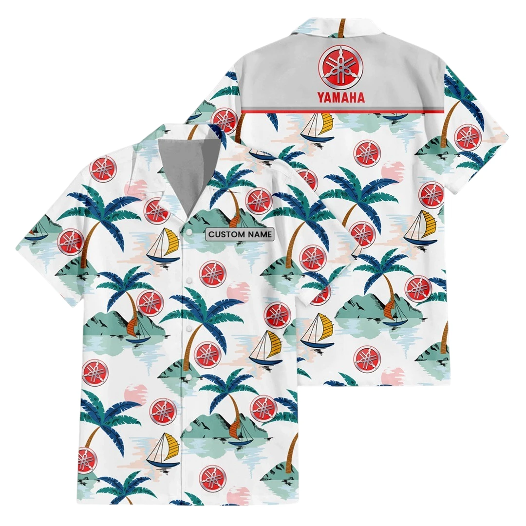 Yamaha Exclusive Logo Button Up Hawaiian Shirt Tropical Landscape Pattern All-over Print, Custom Name HIDI210225Y7HWLS2YMH