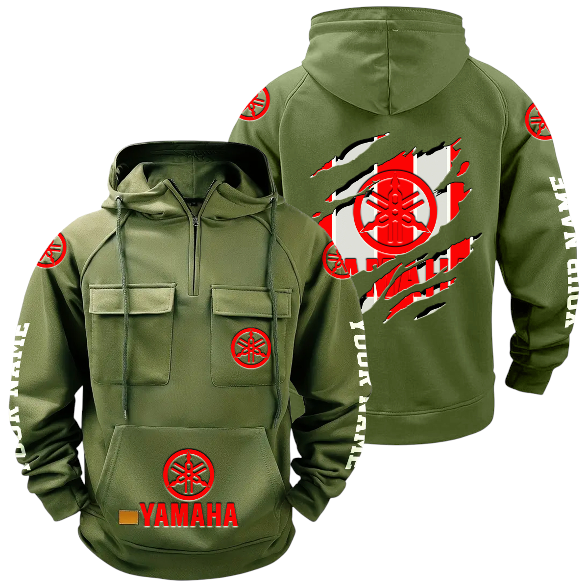 Yamaha Motor Quarter Zip Hoodie Multi-Pockets Custom Name